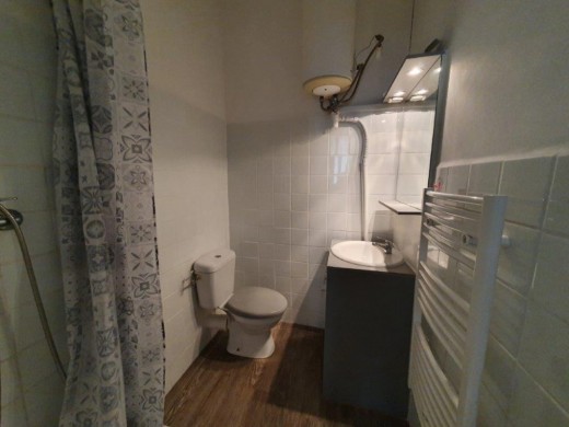 Pièce principale, salle de bains/wc.